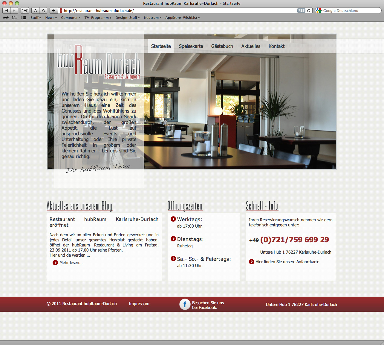 Seit dem 1. Oktober 2011 ist es soweit. Die Webseite des Restaurants „hubRaum Restaurant & Livingroom“ ist Online.